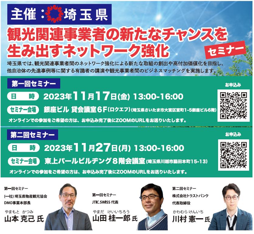 埼玉県 観光関連事業者の新たなチャンスを生み出すネットワーク強化セミナー 11月17・27日開催