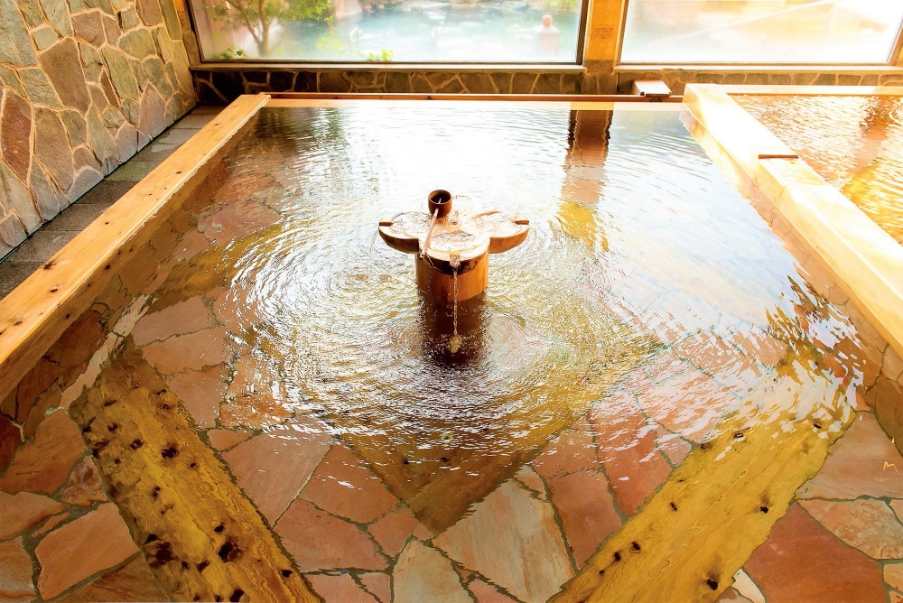 観音温泉では、三つの源泉から、pH9.5の豊かなアルカリ泉、硬度1にも満たない超軟水の極上源泉が毎分600リットルもの勢いで湧出し、その泉質は“美肌の湯”を超越して“うぶ肌の湯”とまでいわれるようになった。飲んでおいしく飲泉にも最適で、日頃の食生活などにより酸性に偏りがちな身体バランスを整える効果も期待される。ペットボトル入りの温泉水「飲む温泉・観音温泉」は過去モンドセレクションで最高金賞と国際優秀品質賞を同時受賞。都内三つ星レストランのスープにも使用され、現地では煮る、炊く、蒸す、焼く、蒸かすなど全ての調理にこの温泉水が使われている。