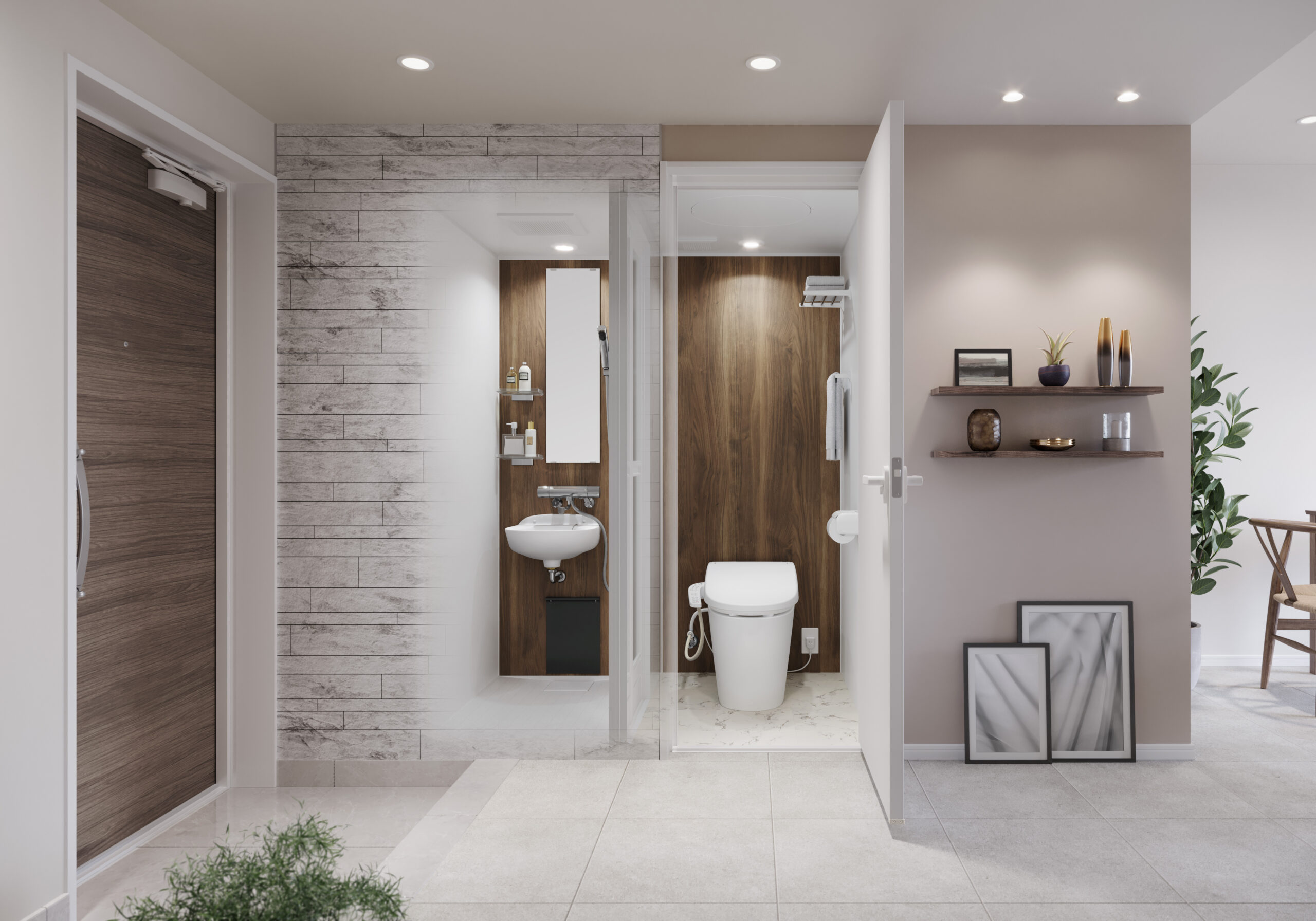 最小限のスペースで独立トイレルームにすることが可能なほか、ユニット施工による工数削減で、大工工事手配の手間やコストを抑えるメリットにもつながる。
