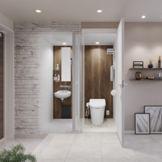 最小限のスペースで独立トイレルームにすることが可能なほか、ユニット施工による工数削減で、大工工事手配の手間やコストを抑えるメリットにもつながる。