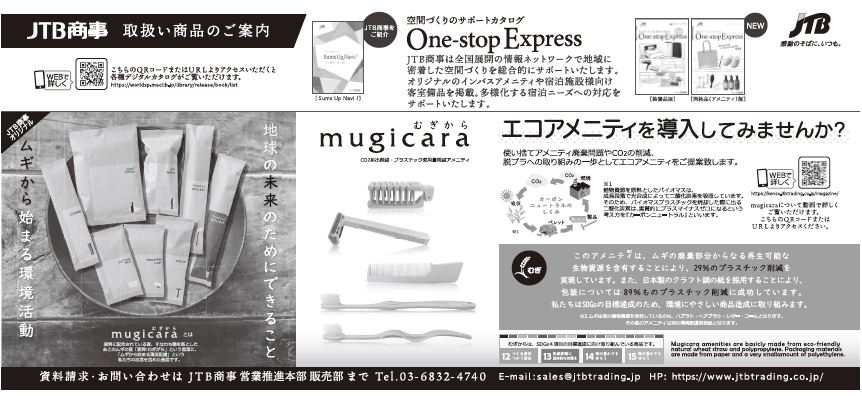 加藤 環境に配慮した商品の開発と販売については継続的に取り組みを行っている。環境に配慮したアメニティシリーズ「mugicara(むぎから)」は、おかげさまでお声掛けをいただく件数が増えてきている。ロボット家電やたためるベッドといった「省人化対策」など、さらに宿泊施設に寄り添ったソリューション商品の開発と提供を行っていく。