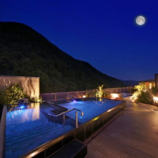 アルカリ性単純温泉の肌触りの良い湯は「秀峰館」と「八番館」それぞれにある大浴場や貸し切り風呂はもちろん、全客室で堪能できる。