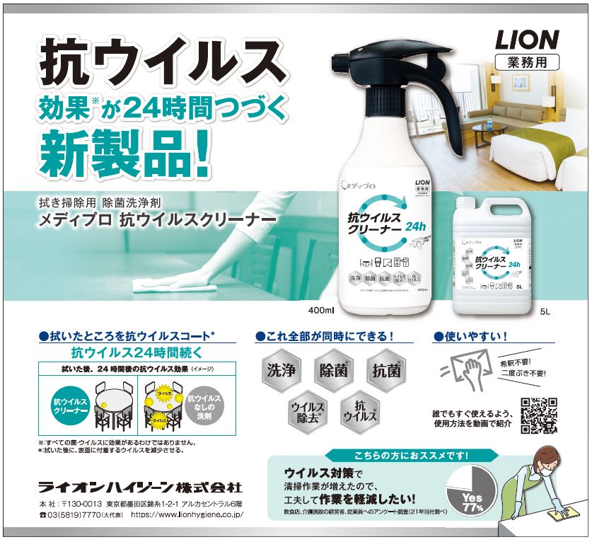 抗ウイルス効果が24時間続くライオンハイジーンの新製品!