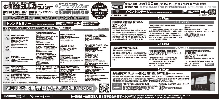 国際ホテルレストランショー HCJ2024 | ホスピタリティとフードサービスの商談専門展示会