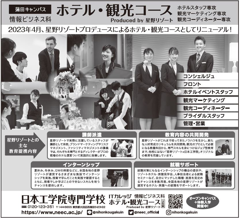 日本工学院専門学校 ホテル・観光コース 2023年4月、星野リゾートプロデュースによるホテル・観光コースとしてリニューアル!