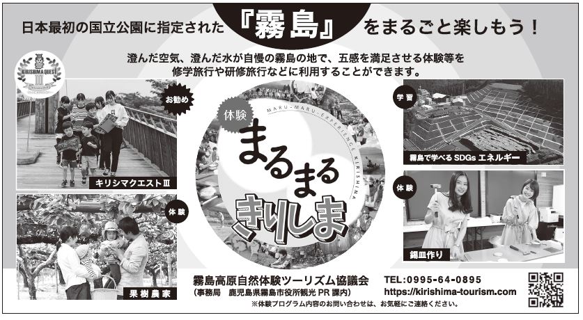 澄んだ空気、澄んだ水が自慢の霧島の地で、五感を満足させる体験等を修学旅行や研修旅行などに利用することができます。
