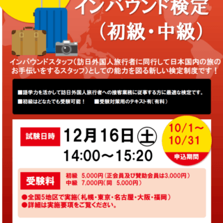 日本添乗サービス協会、12月16日に第3回インバウンド検定 12月に初級・中級試験