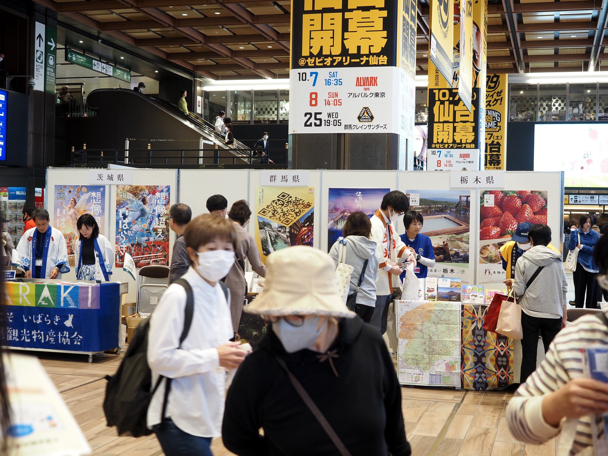 日本観光振興協会関東支部(小川治彦支部長、299団体)は10月7~10日、関東ブロック広域観光振興事業推進協議会との共催で、JR仙台駅2階コンコース前で第32回「ふるさと観光展IN仙台駅」を開催した=写真。各観光団体が観光のPRコーナーを設置し、出展地域の観光案内動画などのモニターを上映。観光ポスターを掲示しながらパンフレットの配布や情報案内、各都県特産品の配布を行い、東北の市民らに魅力をアピールした。