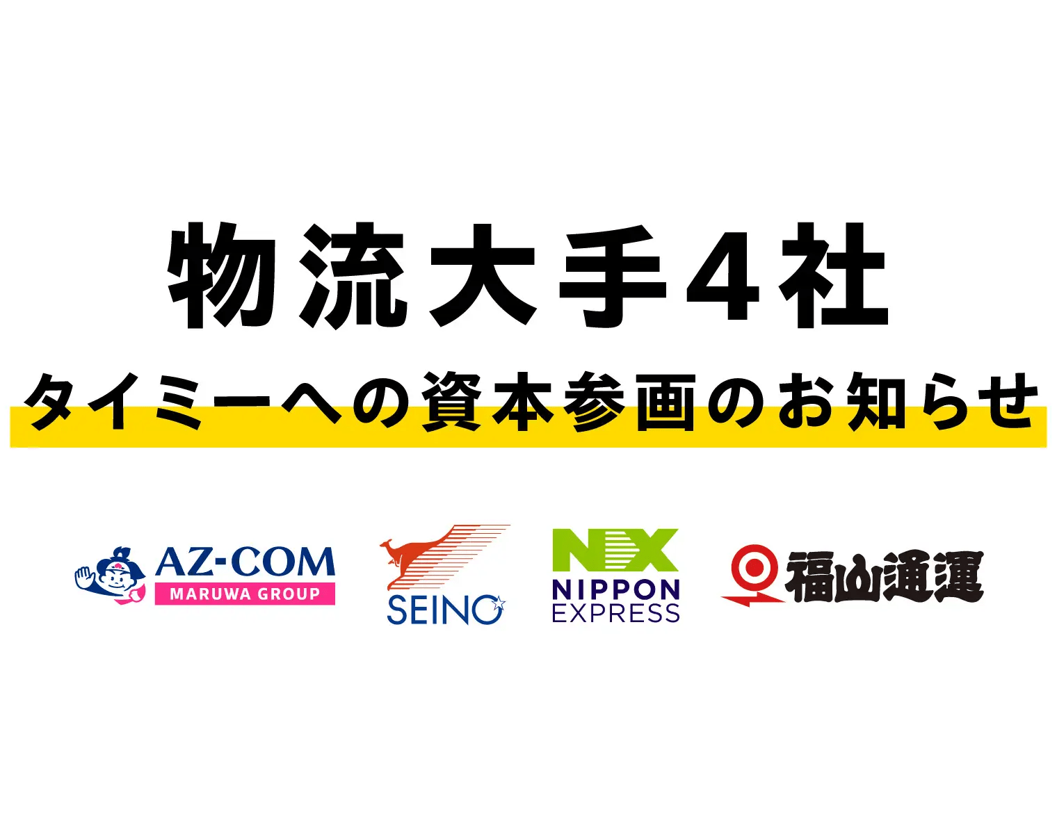 株式会社タイミー(所在地:東京都港区、代表取締役:小川 嶺)は、セカンダリー取引ラウンドを実施し、AZ-COM丸和ホールディングス、セイノーホールディングス、NIPPON EXPRESSホールディングス、福山通運(※1)の物流企業4社が当社の新規株主として参画したことをお知らせいたします。