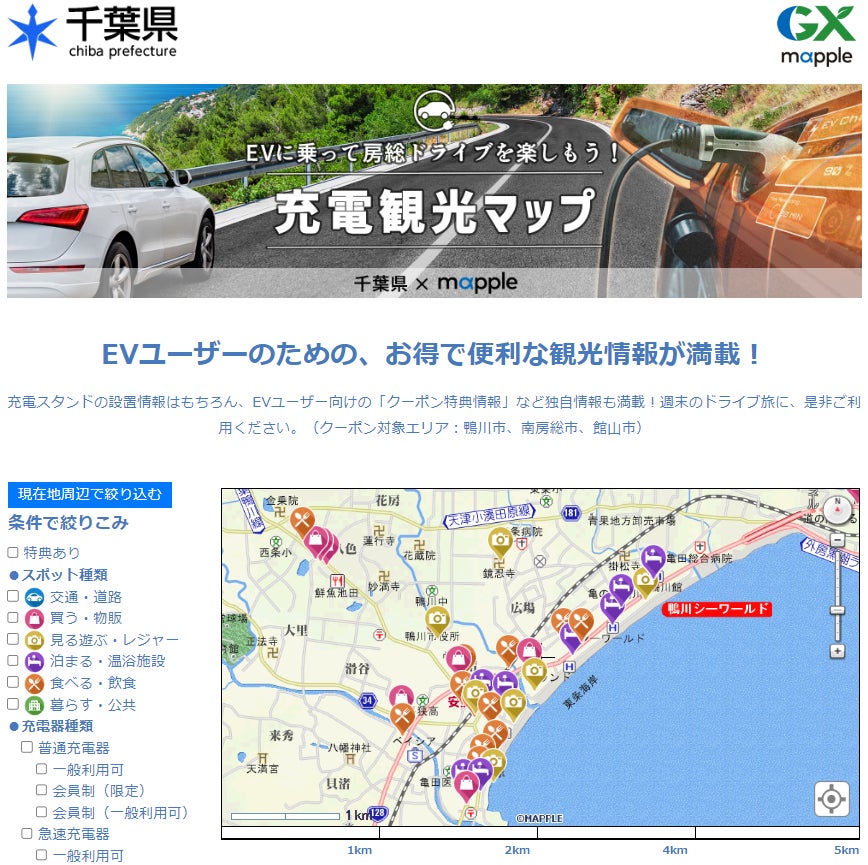 昭文社は11日、千葉県内の充電スタンド観光情報サイト「充電観光マップ」を公開した。