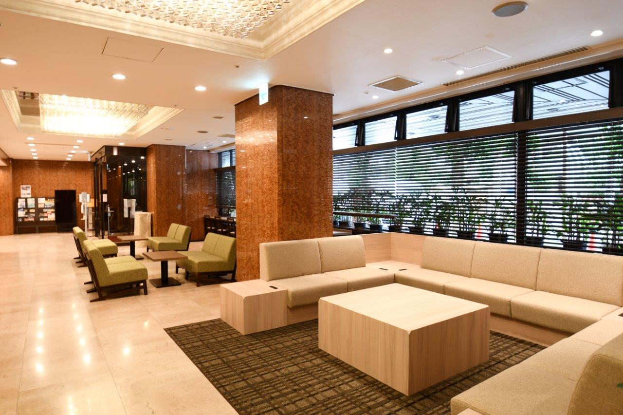 1階メインロビーは大理石の重厚感と柔らかい雰囲気をつくりパーソナルスペース充実へと改装。