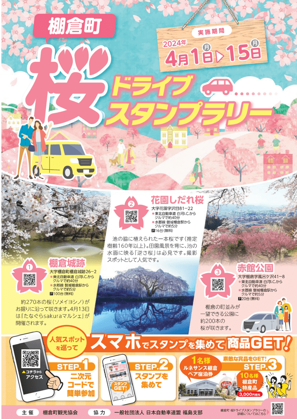 日本自動車連盟(JAF)福島支部は、棚倉町観光協会が主催する同町の桜の名所を巡る「棚倉町ドライブスタンプラリー」に協力し、同町のドライブ観光を促進している。