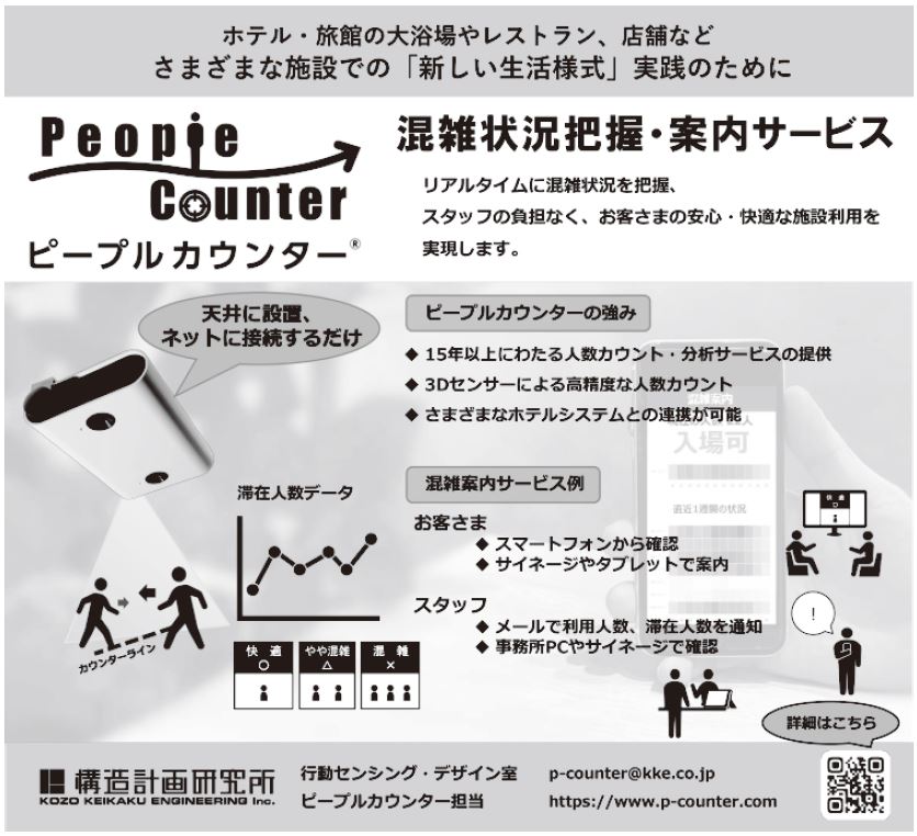 同社では、人数カウントシステム「ピープルカウンター」を用いた施設運営の実践を宿泊施設に提唱している。