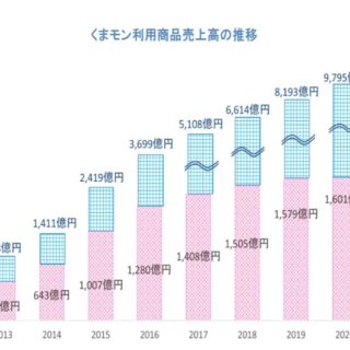 熊本県 は3月31日、「くまモンランド化構想」の推進により、2022年のくまモン利用商品の年間売上高1590億円を達成したと発表した。