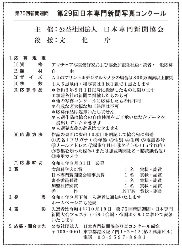 第29回日本専門新聞協会写真コンクール 後援 文化庁