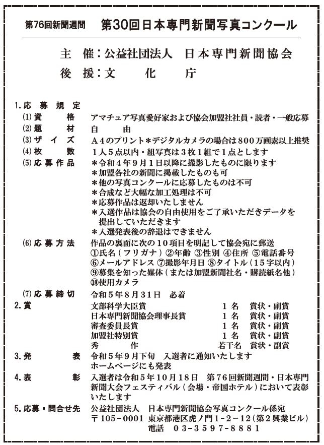 第30回日本専門新聞写真コンクール 応募作品を募集