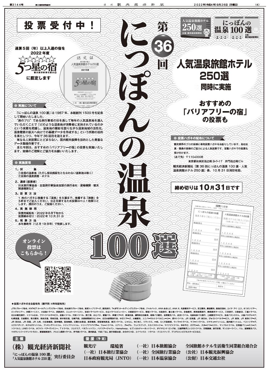 第36回にっぽんの温泉100選 投票受付中!