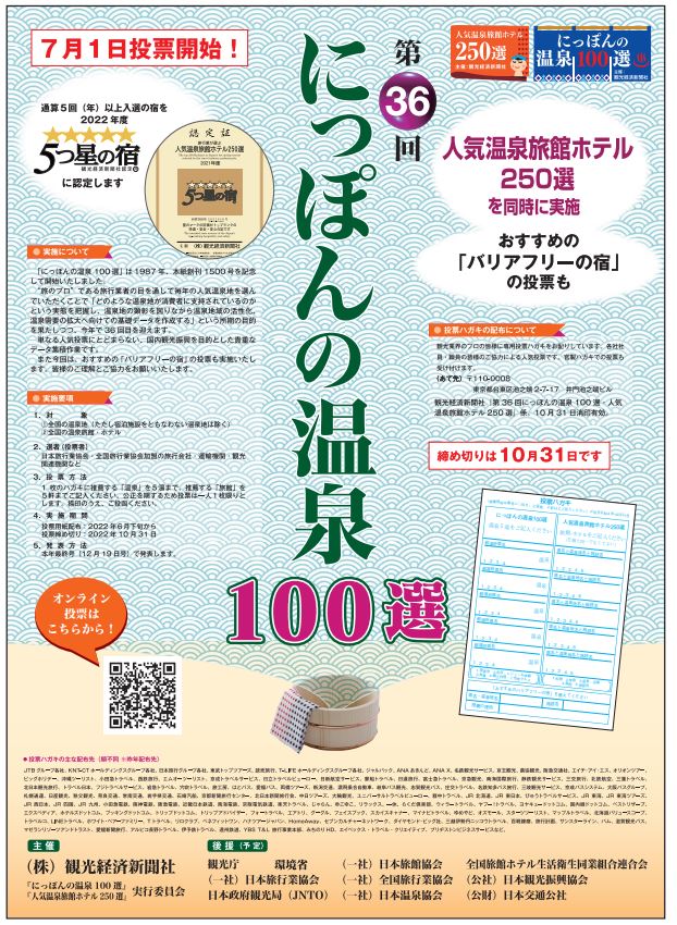 第36回にっぽんの温泉100選・人気温泉旅館ホテル250選 投票受付中