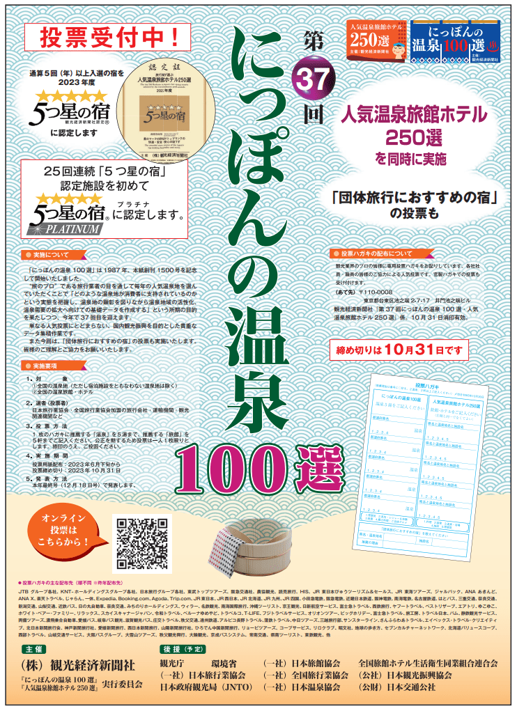 第37回にっぽんの温泉100選・人気温泉旅館ホテル250選 投票受付中!