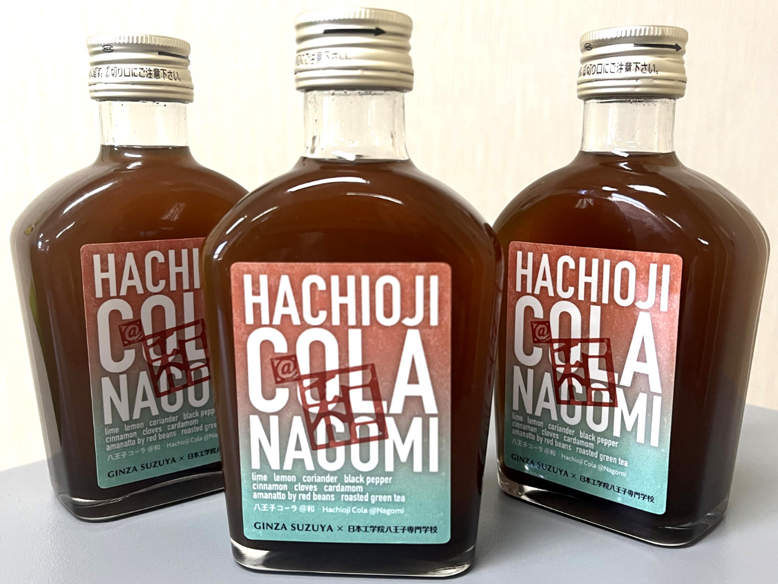 日本工学院八王子専門学校(東京都八王子市、校⻑:山野大星)は、八王子市に製造工場を有する和菓子メーカーの株式会社銀座鈴屋(東京都中央区、代表取締役社長:小木曽太郎)と産学連携し、学生のアイデアによるオリジナルクラフトコーラ『八王子コーラ@和(あっとなごみ)』を共同開発した。