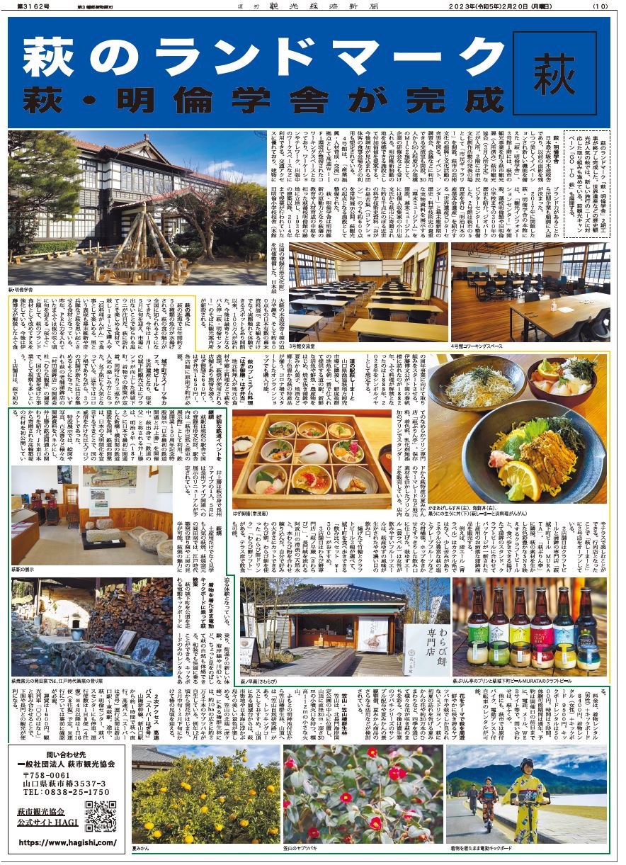萩のランドマーク「萩・明倫学舎」2期工事が終了し完成した。世界遺産などの歴史観光が人気の萩では、新しい旅行のニーズに対応した取り組みも進めている。萩観光キャンペーン「GO TO 萩」も展開する。