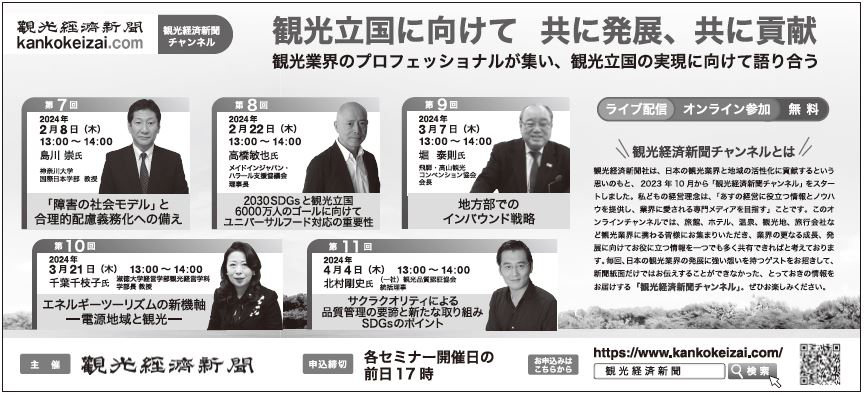 観光経済新聞の無料オンラインセミナー 各開催日前日の17時まで受付中