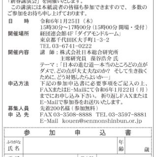 1月25日(木)15時~17時 「日本の進む道ー本当のところどの点がダメで、どの点が大丈夫なのか?そして生き抜くために、どう対処したらよいかー」