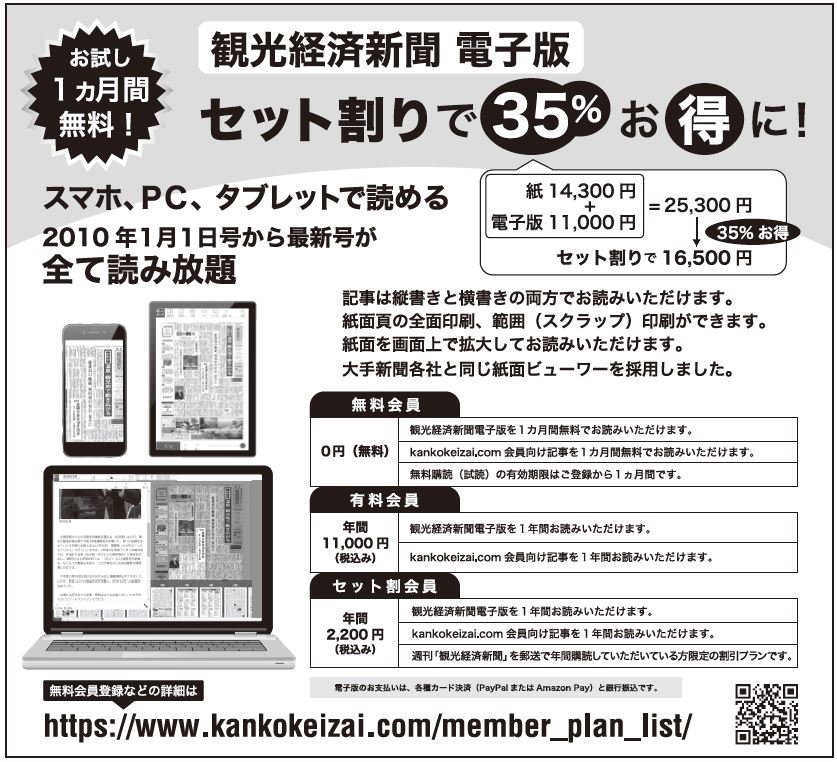 観光経済新聞電子版 セット割は年間たったの2,200円
