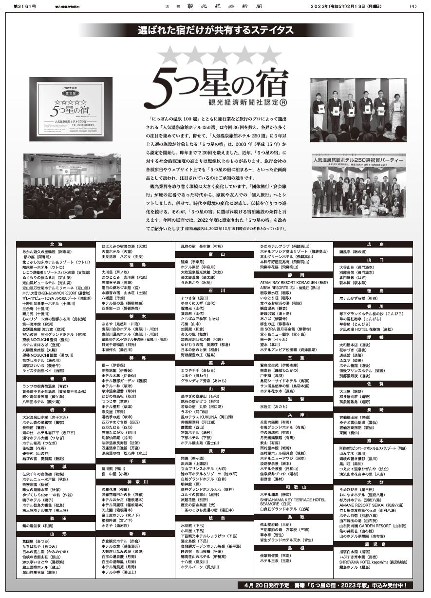 2023年度「5つ星の宿」発表!(2023年12月18日号発表)