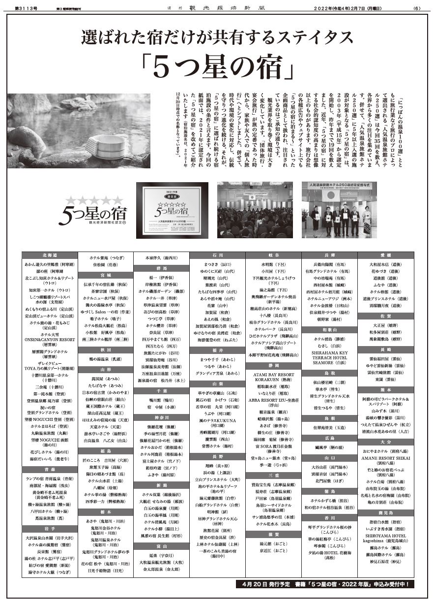 2023年度「5つ星の宿」発表!(2023年12月18日号発表)