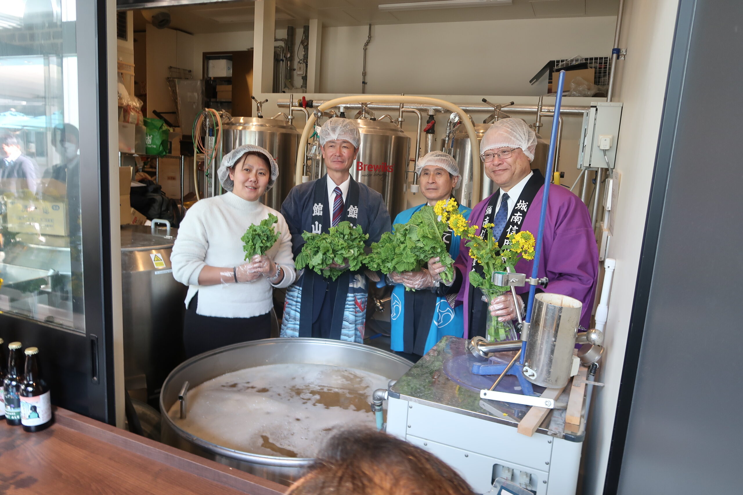 全国の信用金庫で組織する「よい仕事おこしネットワーク」(事務局=城南信用金庫)は9日、東京・羽田の同ネットワークの拠点「よい仕事おこしプラザ」で千葉県館山市の名産、菜の花を使ったクラフトビール「菜の花エール」の仕込み式を行った。同ネットワークと館山市は1月19日に連携協定を締結。今回の商品開発はその締結記念の一環。