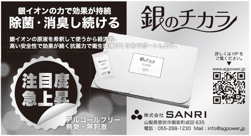 環境関連製品の製造、販売を手掛けるSANRI(サンリ、山梨県笛吹市)は、10月から高濃度銀イオンを原液とし、除菌と消臭ができる抗菌生活シリーズの「銀のチカラ」を発売する。