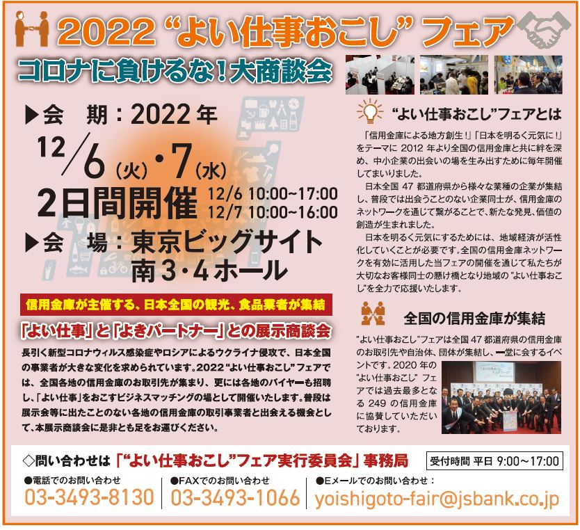 2022"よい仕事おこし"フェア コロナに負けるな大商談会 12月6・7日@東京ビッグサイト