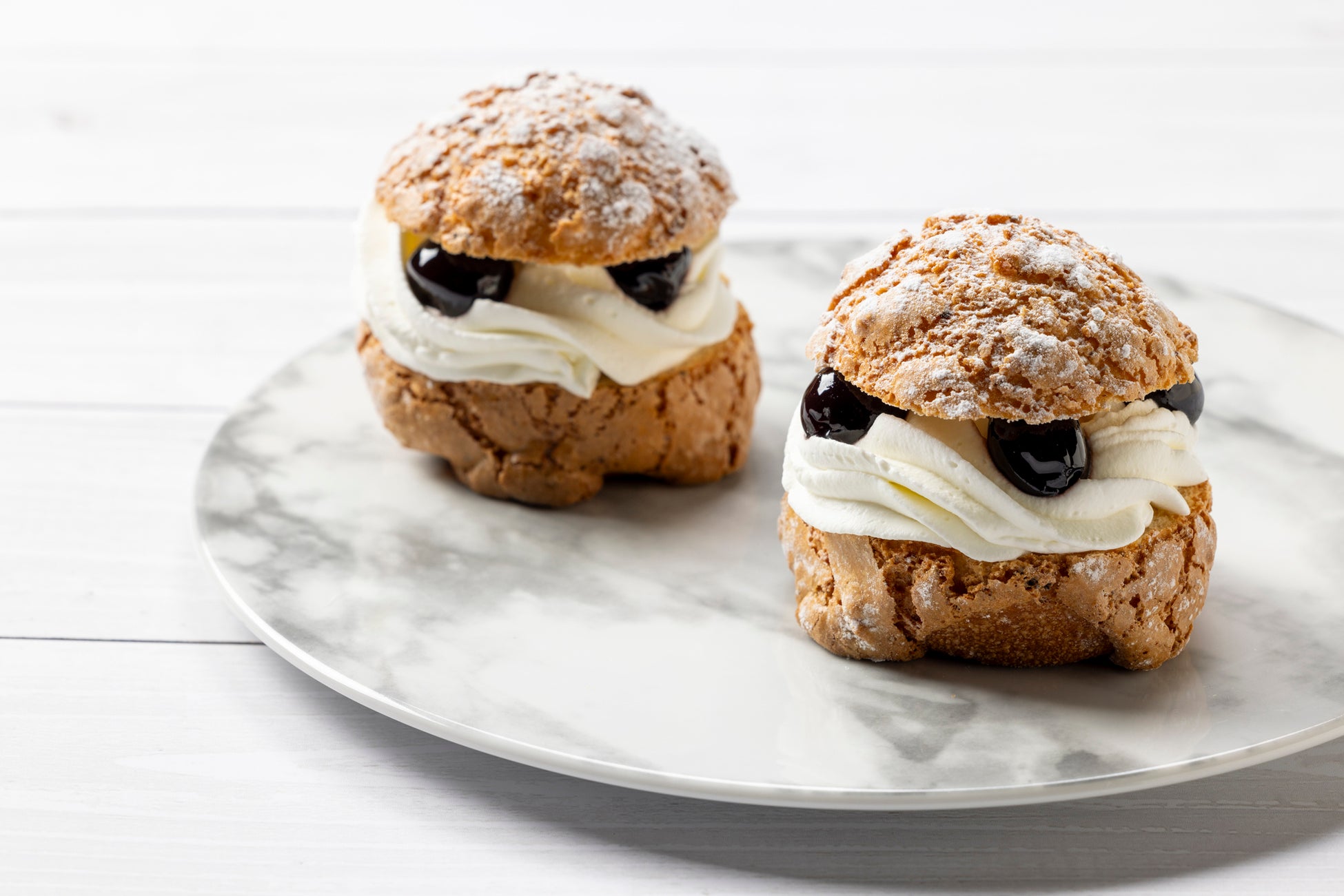 クリスマスシーズンに販売しご好評をいただいたパネトーネがチェリーと合わさって再登場いたします。ヘーゼルナッツのクリームをかけて焼きあげた、外はザクザク、中はふわふわのホテルオリジナルのパネトーネで、チェリーで造るブランデー「キルシュ」に浸け込んだグリオットチェリー、生クリーム、リッチなカスタードクリームをサンドしました。甘酸っぱいチェリーとたっぷりのクリームが口の中に広がる贅沢な一品です。