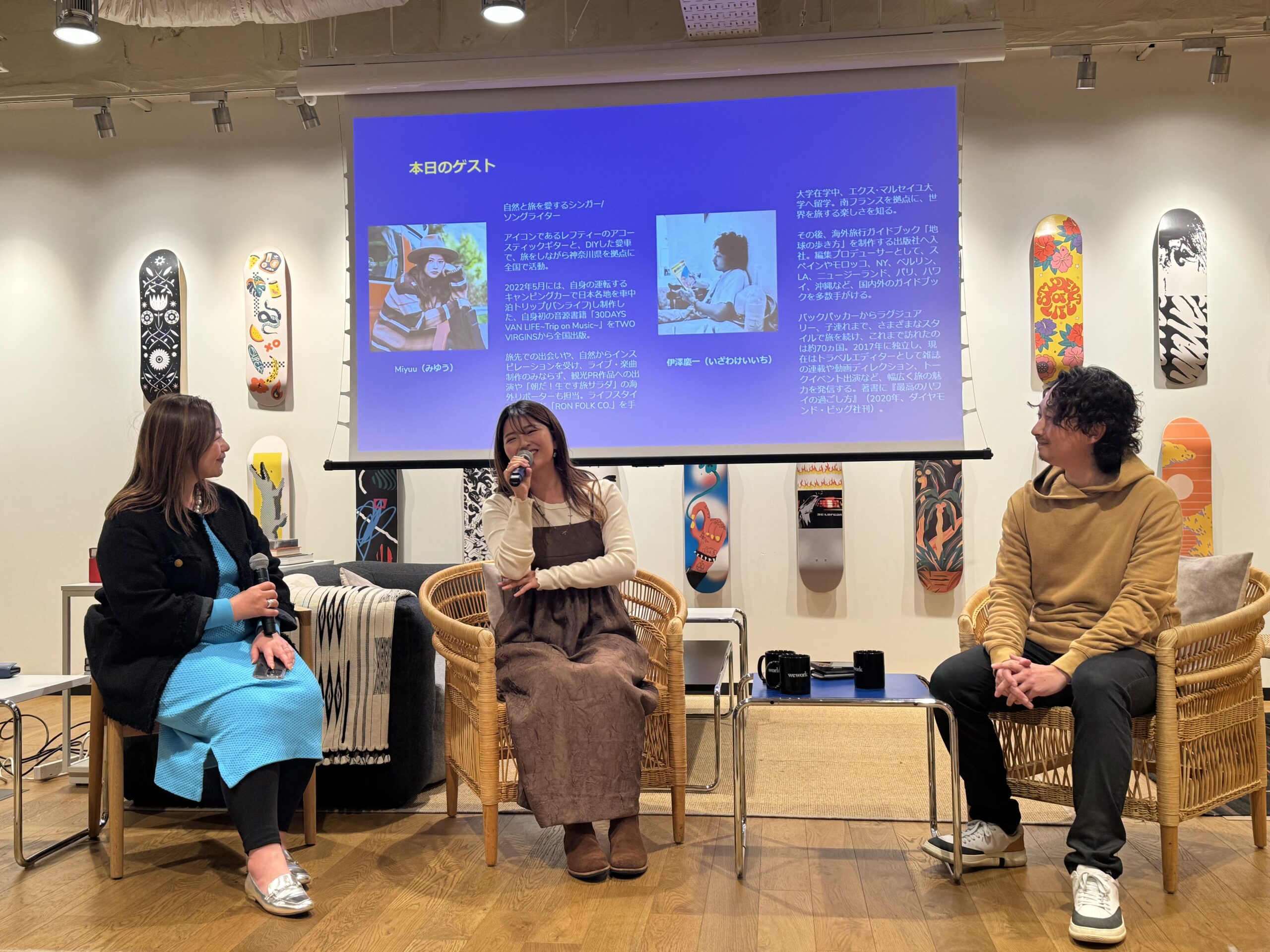 ブッキング・ドットコム・ジャパン(東京都渋谷区)は3月6日、旅するシンガーソングライターのMiyuuさん=写真中央=とトラベルエディターの伊澤慶一さん=写真右=をゲストに招いて、トークイベント「Travel Talk Series Vol.1」を同社渋谷本社で開いた。