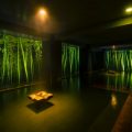 湯場空間でくつろぎを 熊本・黒川温泉の「湯峡の響き優彩」(高島淳一社長)は、落ち着いた雰囲気の中、源泉掛け流しの湯を楽しめることで名高い宿だ。 同館では敷地内の自家源…