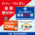 第37回にっぽんの温泉100選・人気温泉旅館ホテル250選投票受付中! ▷拡大 ▷観光経済新聞「第37回にっぽんの温泉100選・人気温泉旅館ホテル250選」ご投票フォーム…