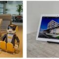 シャープは6月30日、「ロボホン」を活用した宿泊施設向け接客ソリューションの実証実験を「タップホスピタリティラボ沖縄」で開始した。 左:「タップホスピタリティラボ沖縄」フ…