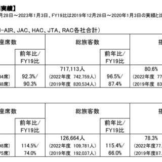 JALは9日、「2023年度 年末年始期間 利用実績」を発表した。