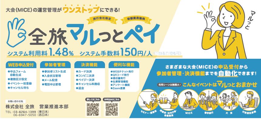 MICEの運営管理がワンストップにできる! 全旅 マルっとペイ